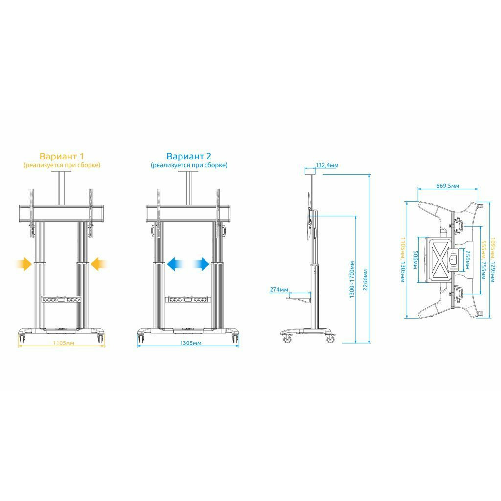 Вы можете выбрать одно из двух положений основания при сборке и это позволит установить ширину стойки от 1105 до 1305 мм! Особенности стойки для презентаций NB CF100, чёрная: