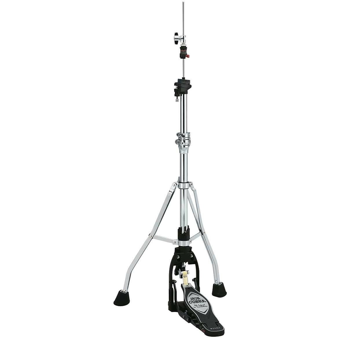 Это модель профессионального класса, которая отличается высочайшим качеством, надежностью и долговечностью. Стойка устанавливается на двух надёжных ножках с большими противоскользящими наконечниками. Такая компактная конфигурация ножек и основания позволяет использовать стойку в ограниченном пространстве и освободить максимум места для ног барабанщика. Это позволяет добиться большей гибкости при формировании конфигурации барабанной установки. Кроме того, основание стойки – поворотное, что позволяет расположить её так, чтобы стойка не мешала при игре, а также удобно разместить педаль. Благодаря небольшому стабилизатору под педалью стойка HH905D с двумя ножками даже более устойчива, чем модели с тремя ножками, смещение стойки исключается даже при самой интенсивной игре. В конструкции стойки используется ряд запатентованных Tama технологий. Например, технология «Spring Seat» позволяет легко наклонить нижнюю тарелку, чтобы получить более чистый и четкий звук. Специальный зажим даёт возможность устанавливать и снимать хай-хет максимально быстро. Кроме того, такое крепление позволяет верхней тарелке более свободно двигаться, что наилучшим образом влияет на резонанс. Аналогично педалям Iron Cobra, угол наклона педалборда HH905D можно регулировать, идеально подогнав его под угол наклона футборда Вашей педали. Стойка сделана из стали высокого качества, она стильно выглядит с блестящей хромированной поверхностью и контрастной черной фурнитурой. Стойка лёгкая и прочная, она быстро разбирается для транспортировки, а ножки – складываются, позволяя компактно разместить стойку при перевозке.