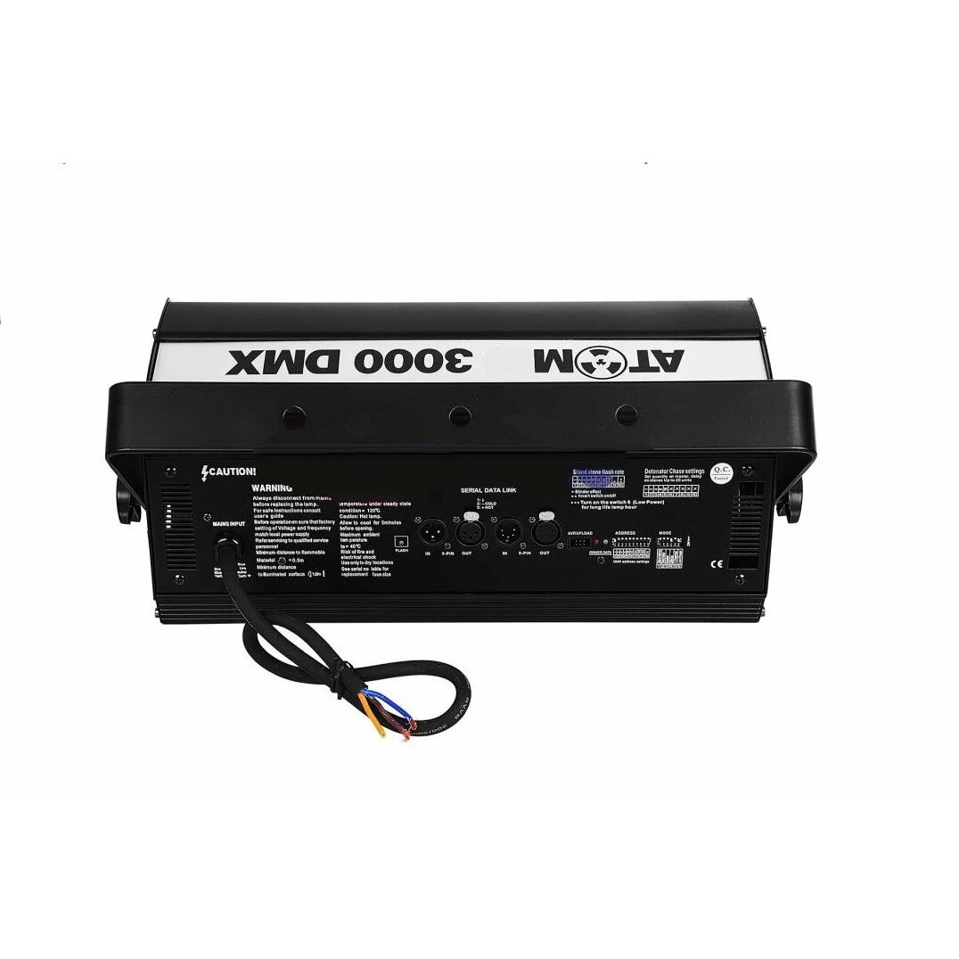 Estrada Pro Atom 3000 DMX - мощный стробоскоп на 3000 Вт на ксеноновой лампе с DMX управлением, встроенными программами и функцией Blinder. Имеет строб эффект с регулировкой длительности каждой вспышки и регулировкой скорости вспышки, DIP переключатель режима интенсивности High/Low power, специальный рефлектор и защита стеклом и встроенные специальные программы. Стробоскоп на ксеноновой лампе большой мощности выполнен в литом алюминиевом корпусе черного цвета.
