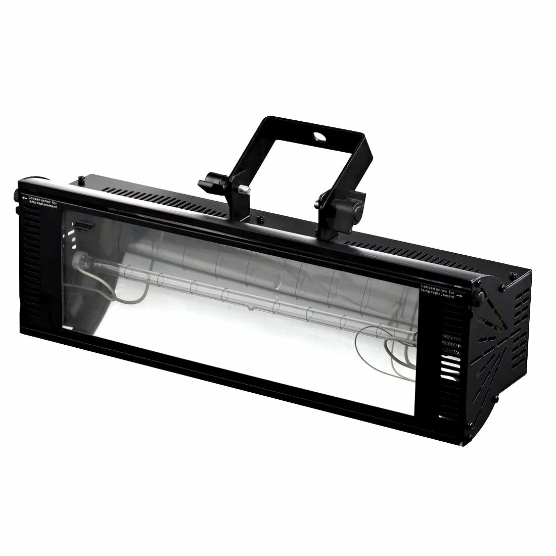 Estrada Pro STROBO 1500 DMX - мощный стробоскоп 1500 Вт на ксеноновой лампе XOP15 с DMX управлением. Имеет DIP свич для управление яркостью и скорости вспышек, DIP переключатель режима интенсивности High/Low power, специальный рефлектор и защиту стеклом и двойную лиру для удобства установки на пол. Стробоскоп на ксеноновой лампе выполнен в литом алюминиевом корпусе черного цвета. Максимальная потребляемая мощность прибора составляет 1600Вт.