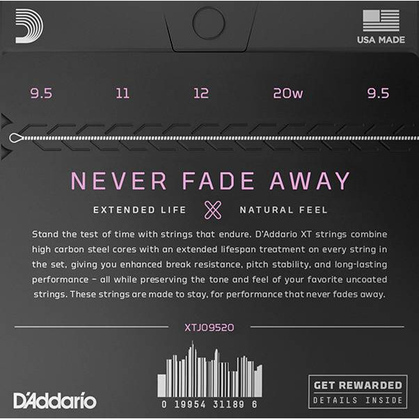 XTJ09520 XT Комплект струн для 5-струнного банджо, сталь, 9,5-20, с покрытием, D'Addario