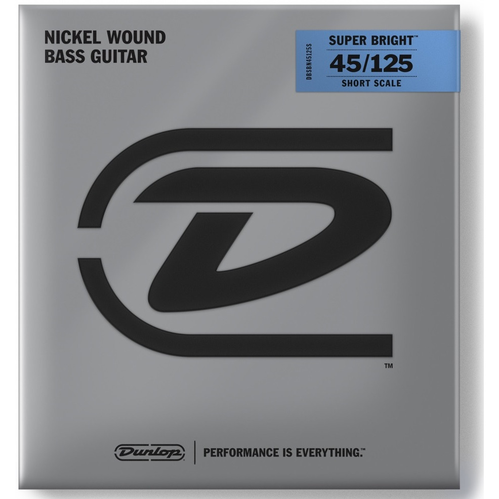 DBSBN45125S Super Bright Комплект струн для 5-струнной бас-гитары, никелированные, Short Scale, 45-125, Dunlop.