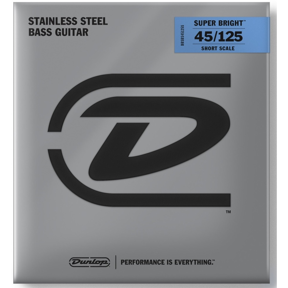 DBSBS45125S Super Bright Комплект струн для 5-струнной бас-гитары, нерж.сталь, Short Scale, 45-125, Dunlop.