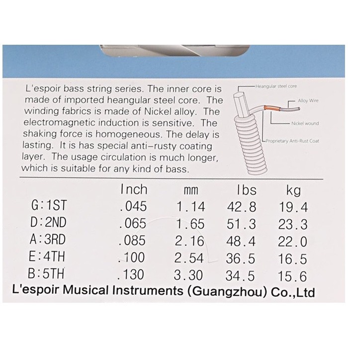 Струны для 5 ти струнной бас гитары LESPOIR LB-05