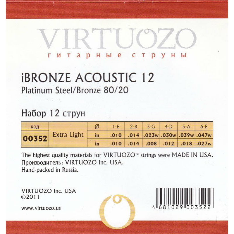 Купить струны для акустической гитары 12 струн Virtuozo 00352 iBRONZE ACOUSTIC