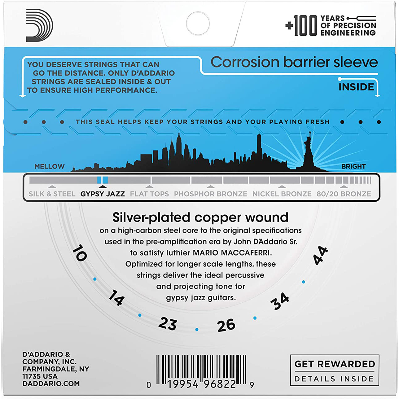 Струны серии Gypsy Jazz разработаны специально для игры в стиле «Джанго». Оплетка из посеребренной меди на сердечнике из высокоуглеродистой стали обеспечивает теплое, сильное звучание, оптимальное для исполнения цыганского джаза.