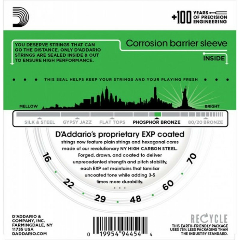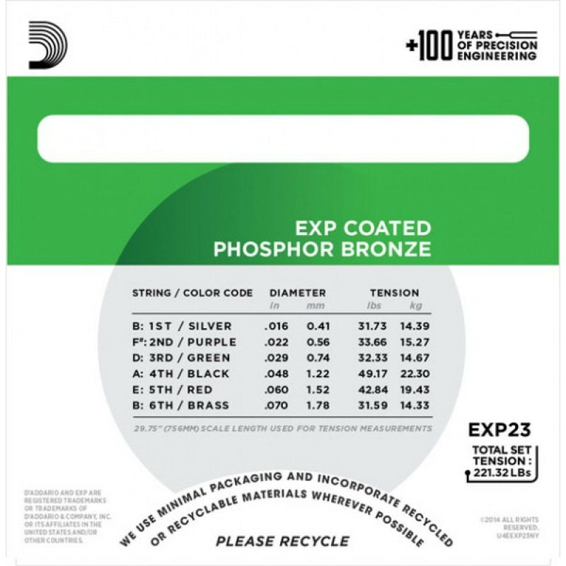 Хотя струны D'ADDARIO EXP23 разработаны в соответствии с современными требованиями к баритон-гитарам с короткой мензурой, они также являются превосходным решением для глубокой низкой настройки большинства стандартных акустических гитар.