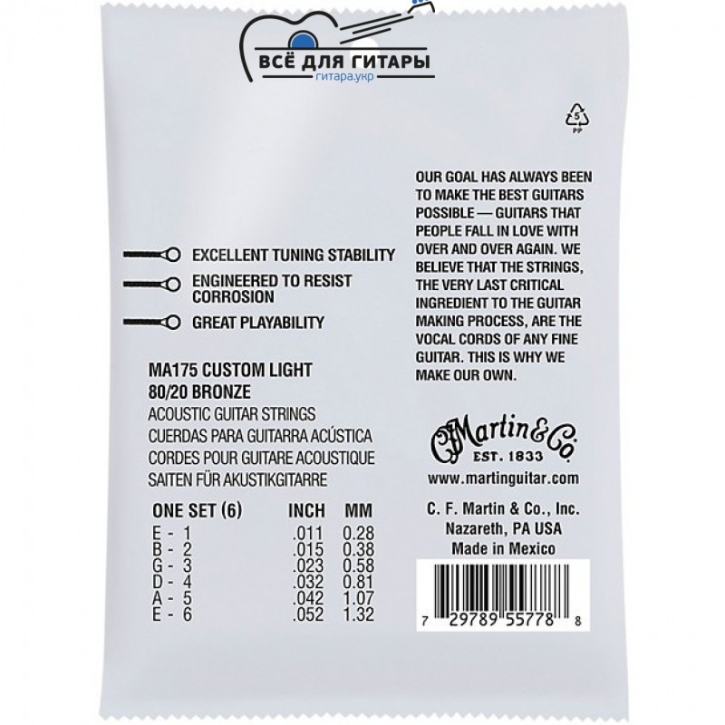 Струны Martin MA175 Authentic Acoustic 80/20 Bronze Light для акустической гитары разработаны с учетом пожеланий лучших мировых исполнителей. Они без проблем выдержат множество часов интенсивных репетиций или просто регулярной игры на гитаре. Все 6 струн имеют уникальный стальной сердечник с наивысшим пределом прочности, покрытый слоем олова для дополнительной стойкости к коррозии. На него наматывается высококачественная фирменная обмотка, которая обеспечивает оригинальный чистый звук. В этих струнах вы можете быть уверены.