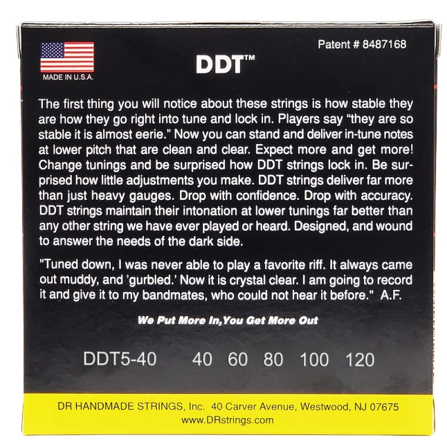 Отличительная черта серии басовых струн DR DDT – это то, как быстро они настраиваются и как долго держат строй. Их стабильность поражает многих басистов. С этими струнами вы сможете извлекать гармонично звучащие ноты с пониженным строем, сохраняя чистоту и яркость звучания. Смена строя происходит так же быстро и без необходимости тонкой настройки. DDT – это не просто «толстые струны», они сохраняют интонацию в пониженных строях лучше чем какие-либо другие струны. В их производстве задействована технология Accurate Core Technology™ (ACT™), которая упрочняет сердечник и устраняет его недостатки по всей длине струны. Улучшенная проволока сердечника струны лежит в основе насыщенного тона, точности, интонации и надежности струн из серии DDT.