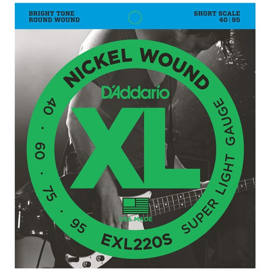 EXL220S Nickel Wound Комплект струн для бас-гитары, Super Light, 40-95, Short Scale, D'Addario.