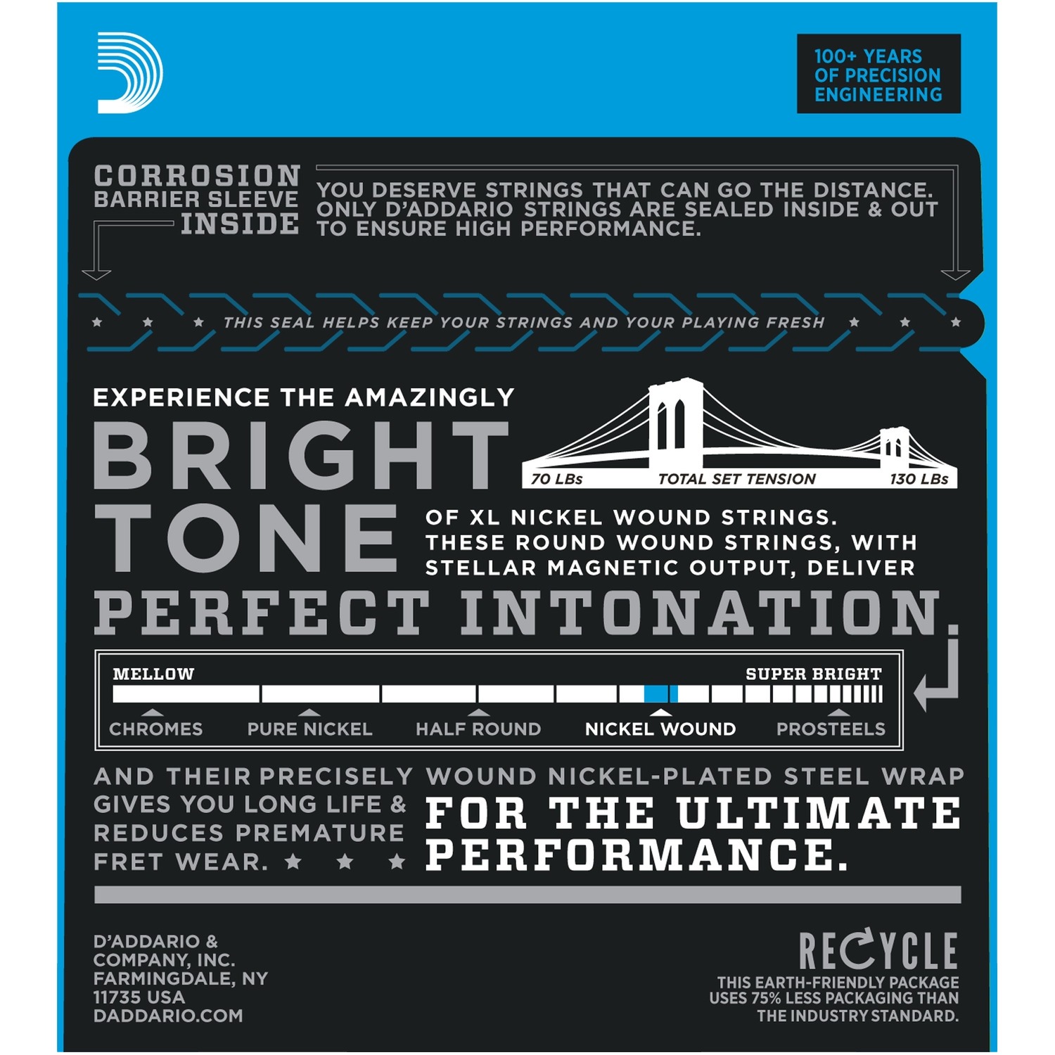 Струны XL Nickel Wound, самые популярные струны D'Addario для электрогитар. Высокоточная обмотка из никелированной стали на шестигранном керне из высокоуглеродистой стали. В результате струны дают продолжительный, выделяющийся яркий звук с прекрасной интонацией, который подходит для широкого круга гитаристов, играющих в разных музыкальных стилях.