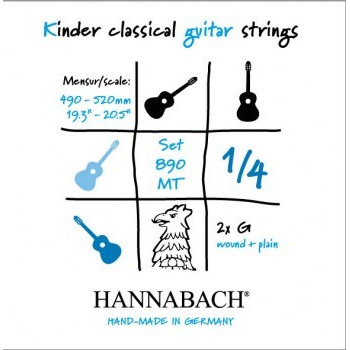 890MT14 Kinder Guitar Size Комплект струн для классической гитары 1/4, посеребренные, Hannabach