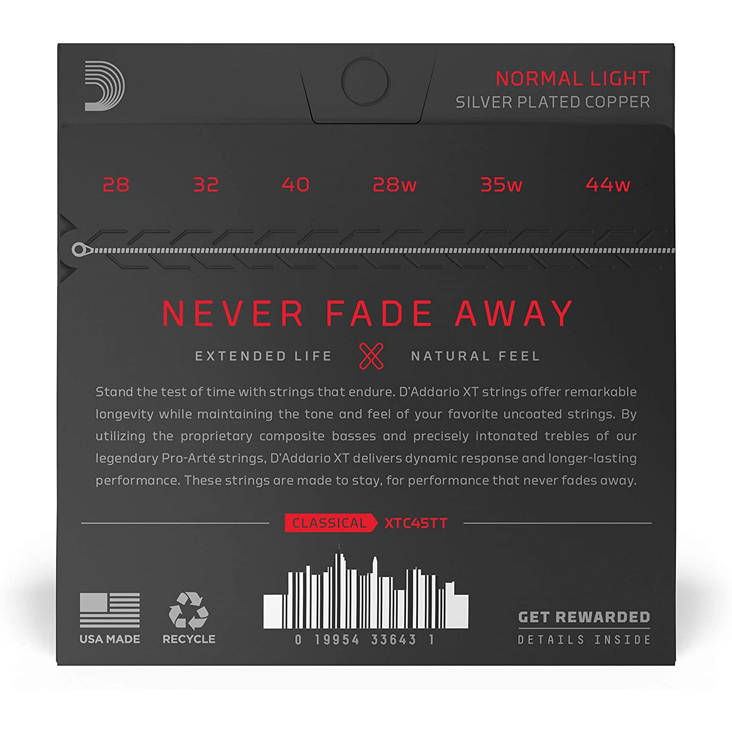 XTC45TT XT Комплект струн для классической гитары, посеребренные, норм.натяжение, с покрытием, D'Addario. Серия XT – это первые струны D'Addario с супертонким защитным напылением. Струны обладают увеличенным сроком службы, повышенной прочностью, стабильностью строя, сохраняя при этом ощущения и звучание, характерные для ваших любимых струн без напыления.