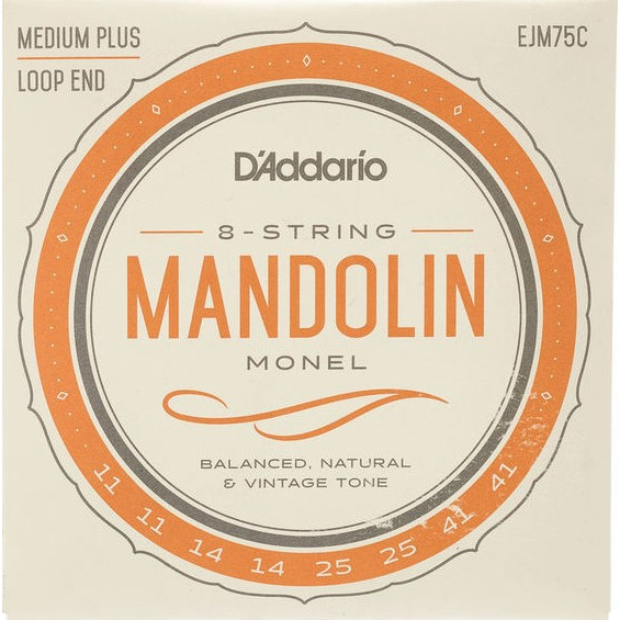 Монель-металл — винтажный сплав никеля, предлагающий сбалансированное и естественное звучание. Струны D'Addario для мандолины изготавливаются из высококачественной стали и оплетки из монель-металла. Доступны два комплекта: средней толщины и средней плюс, популярной благодаря Сэму Бушу (Sam Bush).