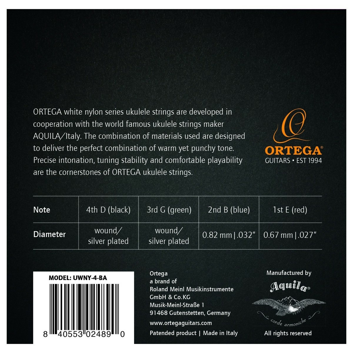 UWNY-4-BA - качественный комплект струн для укулеле типа баритон от компании Ortega. Они выполнены из отборного нейлона и имеют посеребренную обмотку на нижних струнах (D и G). Такое сочетание материалов позволяет добиться не только хорошей стабильности строя, но и ясного, четкого и теплого тембра. Струны приятны для игры и обладают продолжительным сроком службы.