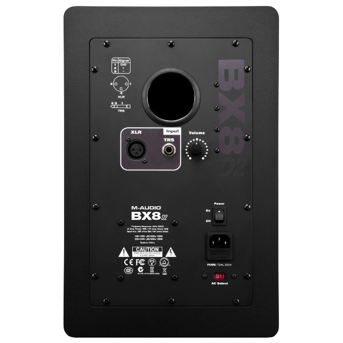 Мониторы M-Audio BX8 D2 продолжают славные традиции этой серии своим новым элегантным внешним видом и усовершенствованной конструкцией. При создании этой модели мы применили технологии, применяемые в наших мониторах класса high-end, что позволило расширить частотный диапазон и обеспечить ровное и более естественное звучание. Специально разработанные аналоговые усилители класса А/В имеют превосходные динамические характеристики и обеспечивают точность звучания во всем частотном диапазоне. Низкочастотный динамик нового поколения с диффузором из тканого кевлара и шелковый твитер купольного типа с волноводом обеспечивают насыщенное, четкое звучание. Мониторы BX8 D2 предоставляют Вам чрезвычайную точность звучания и высшую степень удовольствия от их прослушивания.
