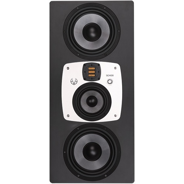 Если вы ищете высококачественные и мощные мониторы для вашей студии, вы непременно должны обратить внимание на эту модель. SC408 может похвастаться мощным массивом усиления: на каждый динамик приходится по одному усилителю. Динамики бо́льшего диаметра удваивают все низкие частоты вплоть до частоты среза. Выше нее начинает играть среднечастотный динамик. Это также означает, что во все четырёхполосные мониторы EVE Audio симметричны, так как вуферы, расположенные по краям, воспроизводят одни и те же частоты. В итоге вы получаете невероятное воспроизведение баса, ровную АЧХ, и впечатляющую мощность для вашей студийной контрольной комнаты. Пластина, на которой закреплены среднечастотный динамик и AMT твитер может быть повернута как для горизонтального положения монитора, так и вертикального.