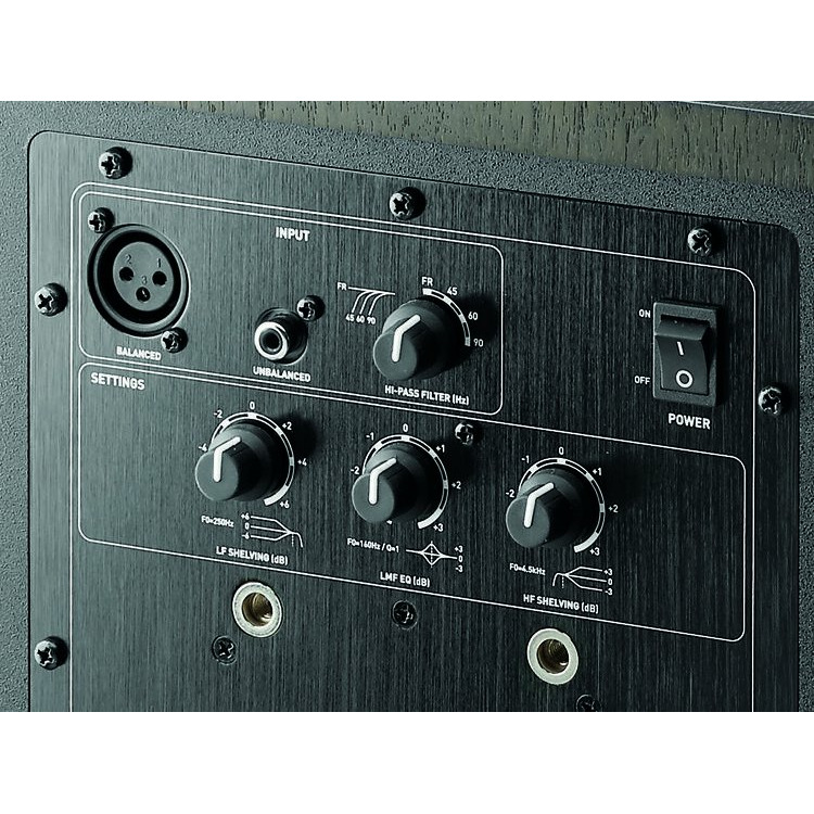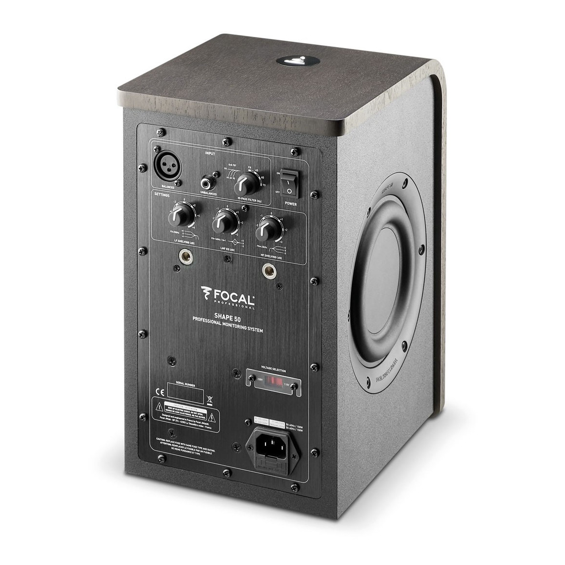 Мониторы Focal Shape имеют 2 входа: балансный на разъёме XLR и небалансный на RCA разъеме. Помимо входов на задней панели каждого монитора имеется тумблер или регулятор High-Pass фильтра, а также регуляторы подстройки уровня высоких, средних и низких частот.