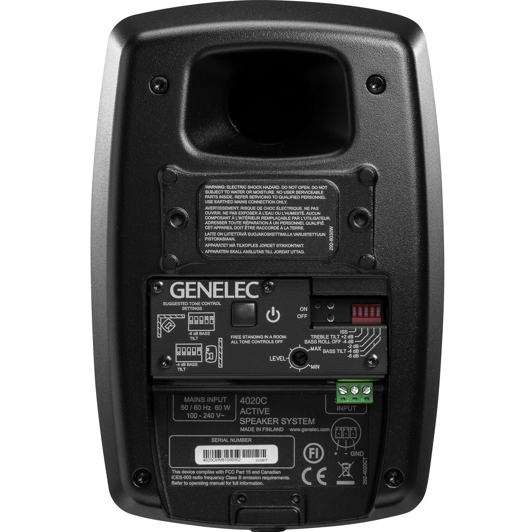 Благодаря скругленным углам и специальному акустическому оформлению ВЧ-динамика, Genelec 4020C обладает очень низким уровнем дифракции звуковых волн, благодаря чему буквально растворяется в звуковой сцене. Кроме того, сфокусированная диаграмма направленности АС позволяет ей хорошо работать в качестве монитора ближнего поля, поэтому её часто выбирают для домашних студий звукозаписи. Есть басовый обрезной фильтр, который переключается на тыловой панели с помощью одного из DIP-переключателей: другие предназначены для настройки звучания колонки в зависимости от условий прослушивания. С помощью одного из переключателей можно оптимизировать звучание при настольном размещении, с помощью других – ослабить низкие частоты на 2, 4 или 6 дБ. Ниже переключателей находится колодка Euroblock с тремя разъемами для подключения входного кабеля. Кабинет обладает магнитным экранированием с целью предотвращения негативного влияния сигнала. Он может быть выполнен в черном или белом цветах. По предварительному заказу возможна покраска корпуса в один из 120 цветов RAL (расцветка Individual).