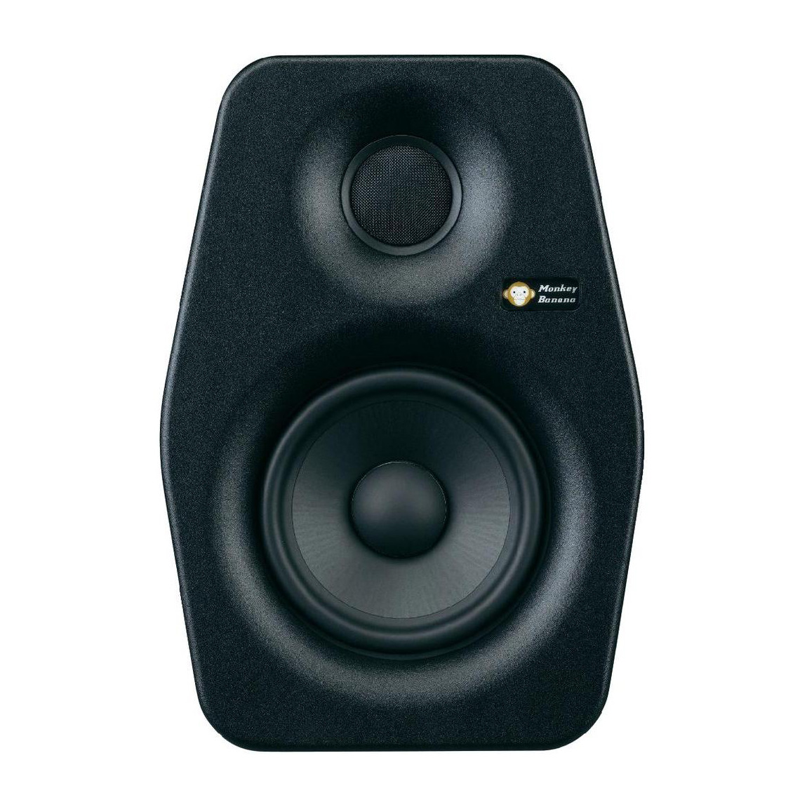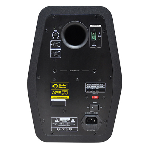 Monkey Banana APE 5 Black встраиваемый студийный активный монитор. Новый игрок среди встраиваемых студийных мониторов. В мониторе используются только экологически чистые материалы. Обладает 5 1/4 дюймовым динамиком и 1" твитером. Данные мониторы можно сравнить с брендовыми моделями популярных мониторов. Корпус выполнен из МДФ. Для достижения наилучшего акустического результата инженерами была проведена огромная работа. Дизайн корпуса с шестью углами не только привлекателен, но и позволяет гасить нежелательные вибрации. Материал МДФ обеспечивает правильное демпфирование вибраций от драйвера, которые могут создать искажения звука в корпусе. Трансформатор разработан так, чтобы уменьшить вибрации, шум и утечки магнитного потока и электромагнитных помех. Входной разъем IEC AC. ВЧ динамик сделан с применением высококачественного чистого шелка и имеет низкий резонанс и высокую коммутирующую способность. В НЧ-динамике применяется углеродное волокно и керамика. Корпус имеет магнитное экранирование.