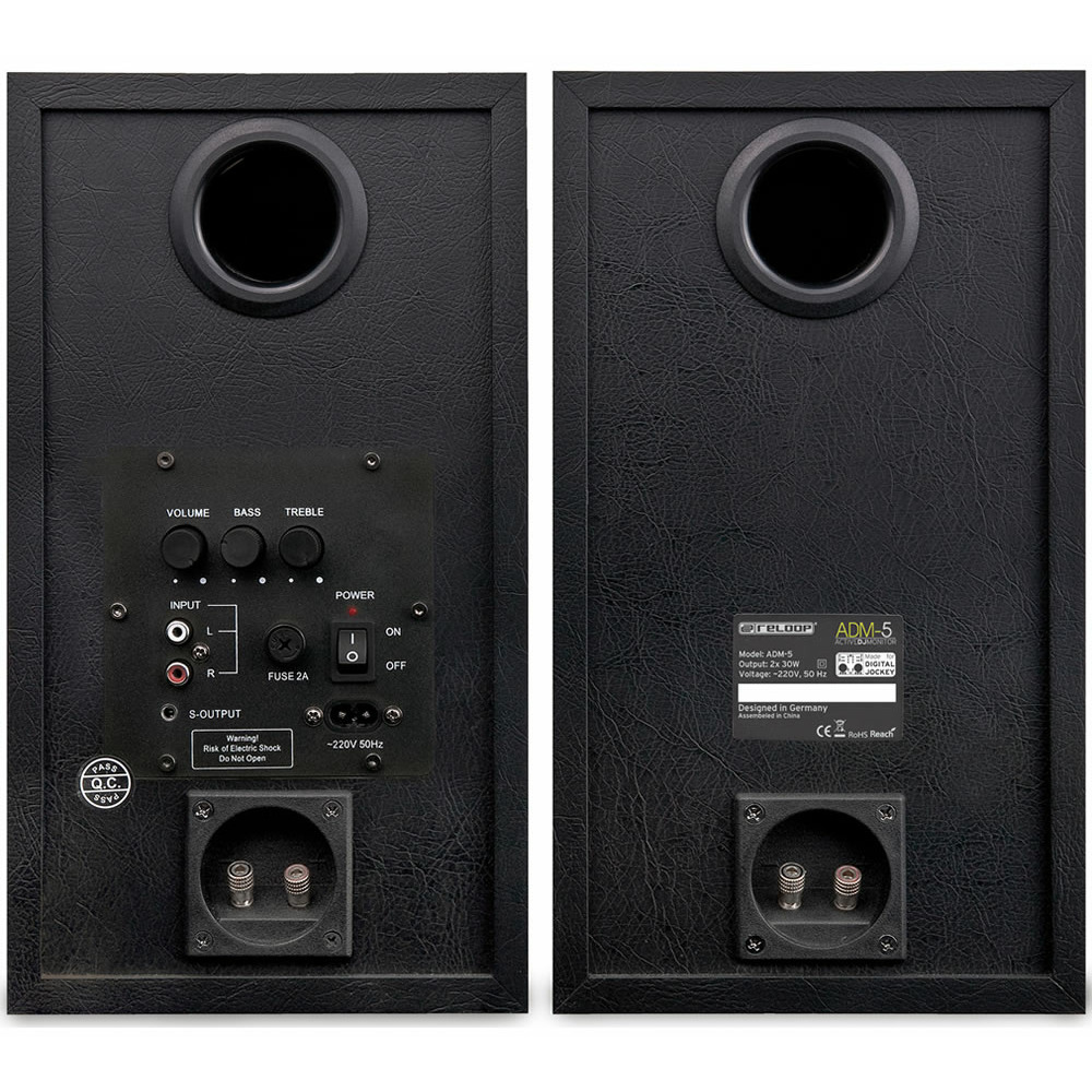 Недорогая пара качественных студийных мониторов ближнего поля Reloop ADM-5 – готовая к работе активная система с производительным встроенным усилителем. Данный комплект состоит из пары двухполосных громкоговорителей. Один является ведущим: в него встроен усилитель, а другой – ведомым. Второй, по сути, представляет собой пассивную АС.