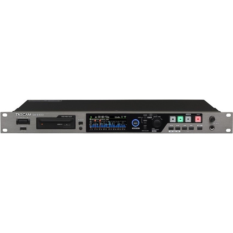 DA-6400 – многодорожечный цифровой рекордер, представленный компанией Tascam. Данное устройство – это система для живой записи с микшерной консоли или резервной/архивной записи с компьютера с DAW. По заверениям разработчика, в модели DA-6400 сочетаются высокая производительность, гибкость в работе и абсолютная надежность. Рекордер обеспечивает запись аудио на SSD диск, располагая при этом весьма достаточным функционалом и возможностью установки до двух плат расширения.