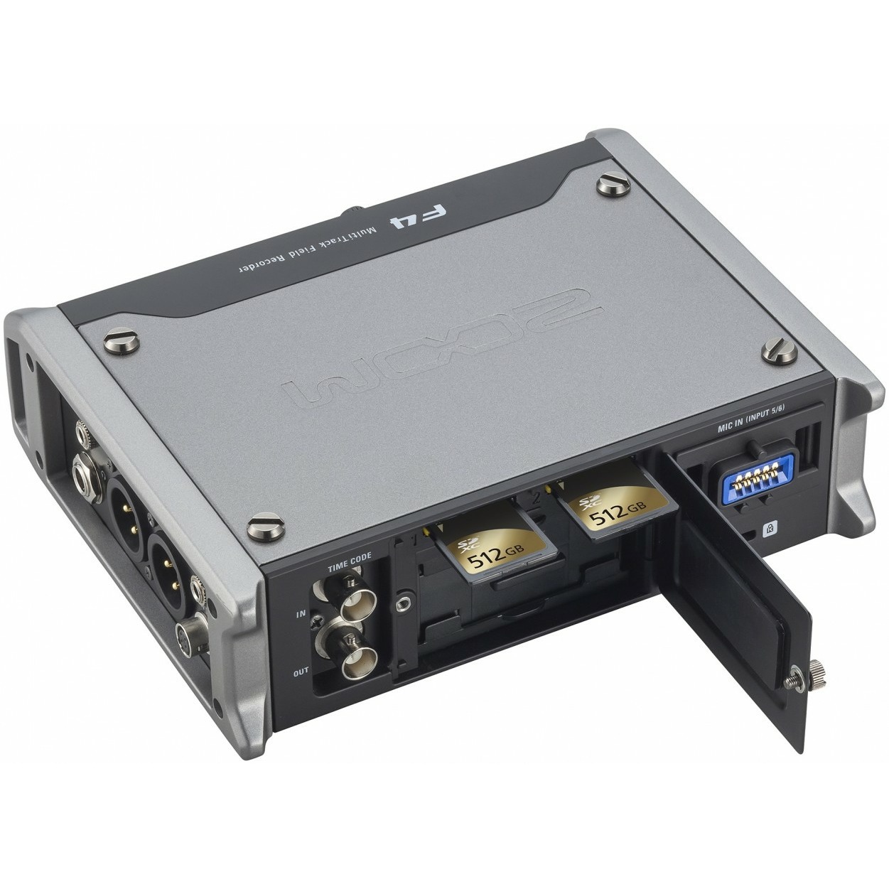F4 оснащен четырьмя совмещенными XLR/TRS входами, 3.5-миллиметровым стерео входом, а также разъемом для микрофонных капсюлей Zoom. Он способен записывать на шесть дискретных дорожек с дополнительной микшерной стерео дорожкой – в любом разрешении вплоть до 24-бит/192 кГц.