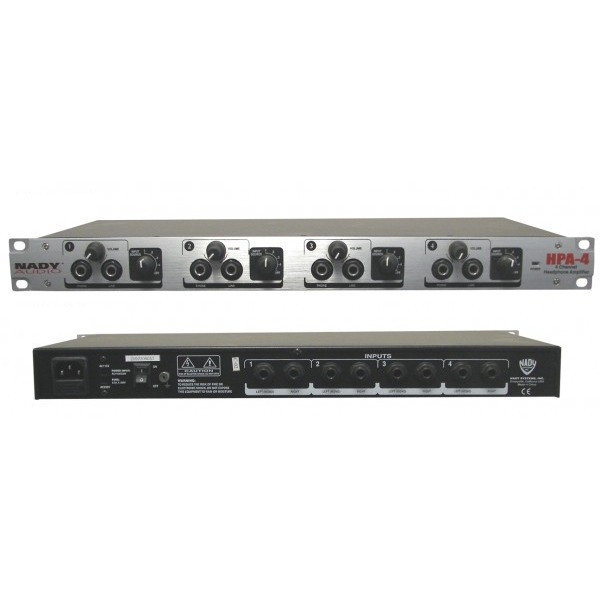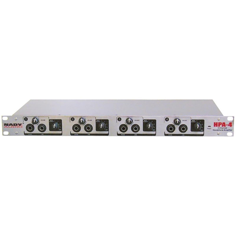 Nady HPA-4 - это 4-канальный усилитель/распределитель для наушников. На задней панели устройства расположены 4 стереофонических входа, организованных на 8-ми монофонических джеках. На передней панели расположены 4 стереофонических выхода для подключения наушников и 4 стереофонических линейных выхода. Его размеры достаточно компактны, стандартная высота в стойке 1U. Устройство простое в управлении, есть все необходимые разъемы для подключения. Для каждой пары наушников можно выбирать любой из 4 входов прибора. Уровень звука на каждой паре наушников и каждом линейном выходе регулируется отдельно. Nady HPA-4 отличается чрезвычайно низким уровнем шума и не вносит во входной сигнал никаких искажений. Допускается последовательное соединение до 4-х подобных устройств, что позволяет использовать одновременно 16 пар наушников.