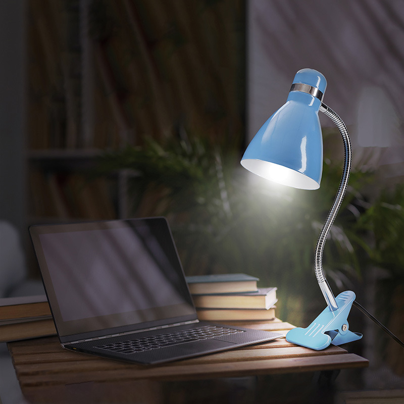 Светильник настольный Rexant 603-1013 Моби на металлической стойке с зажимом-прищепкой, с цоколем Е27, 60 Вт, цвет летнее небо