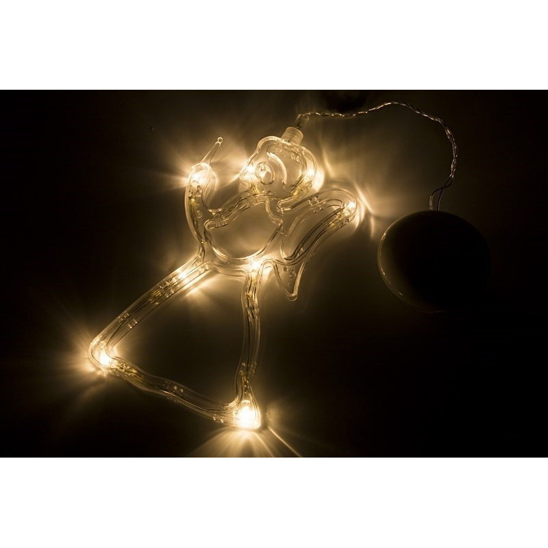 Neon-Night Ангелок, теплый белый 501-015 - светодиодная фигура на присоске с подвесом, которая станет отличным элементом праздничного декорирования. Внутри изделия помещается 8 ярких светодиодов, которые и обеспечивают свечение. Для работы фигурки необходимы 3 батарейки AAA, которые идут в комплекте и находятся в блоке питания, расположенном на расстоянии 20 см от изделия на подвесе. Для фиксации фигурки на окне или любой другой гладкой поверхности предусмотрена надежная присоска.
