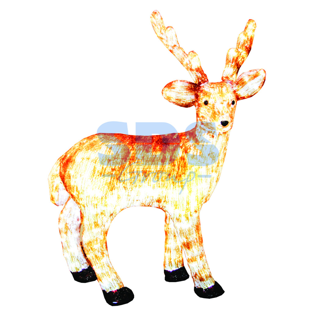 Акриловые фигуры за несколько лет вызвали большой интерес у дизайнеров и частных клиентов. С каждым годом расширяется не только ассортимент акриловых фигур, но и появляются новые технологии нанесения акрила. Эти яркие, светящиеся объемные фигуры, состоящие из металлического каркаса, акрила и светодиодов, применяются для оформления и создания новогодней атмосферы в кафе, ресторанах, торговых центрах, магазинах, на площадях и перед входом, а также просто в частных домах и квартирах. Все фигуры укомплектованы понижающим трансформатором , что обеспечивает безопасность при контактировании, а так же имеют степень защиты IP 44, что позволяет использовать их как в помещении, так и на улице. Акриловая светодиодная фигура Бурый олень 100 см 380 светодиодов IP 44 513-305 высотой 100 см, светящаяся более чем 380 ярких диодов, выполнена по специальной технологии нанесения акрила имитируя шерстяной покров реального животного. Новинка этого сезона позволит Вам создать ту самую, настояющую новогоднюю атмосферу и принести сотни радостных улыбок. Можно создать более интересную композицию и сделать праздник еще ярче, если составить несколько бурых оленей вместе.