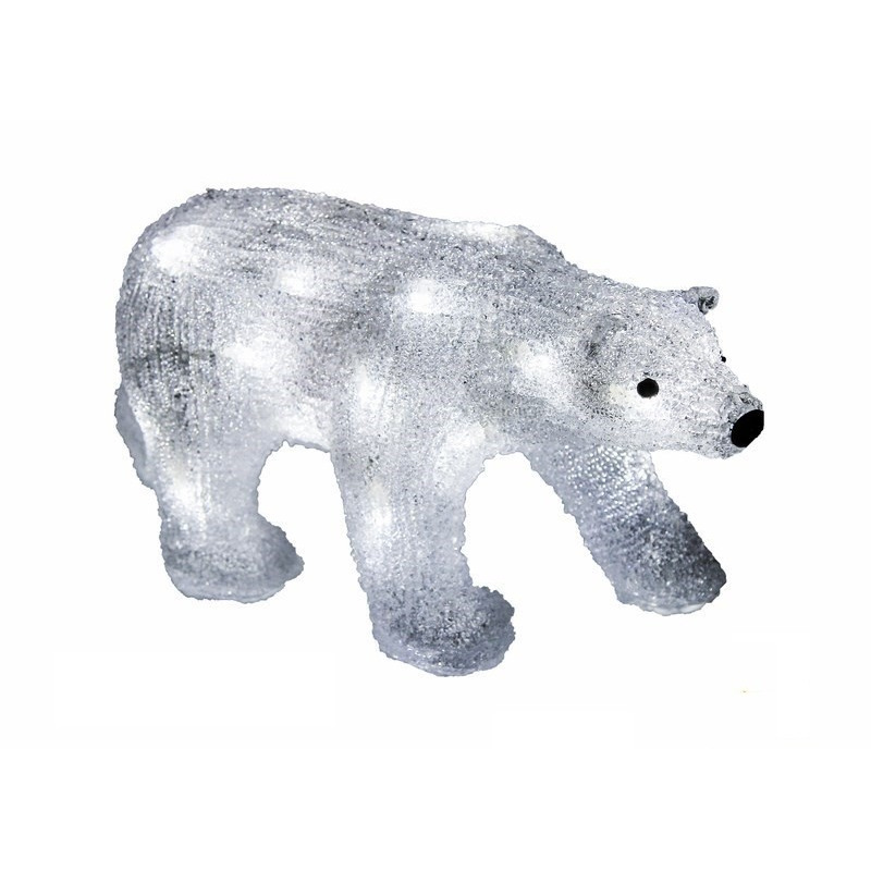 Акриловые фигуры за несколько лет вызвали большой интерес у дизайнеров и частных клиентов. С каждым годом расширяется не только ассортимент акриловых фигур, но и появляются новые технологии нанесения акрила. Эти яркие, светящиеся объемные фигуры, состоящие из металлического каркаса, акрила и светодиодов, применяются для оформления и создания новогодней атмосферы в кафе, ресторанах, торговых центрах, магазинах, а также просто в частных домах и квартирах. Акриловая светодиодная фигура Медведь 34.5х12х17 см 4.5 В 513-315 высотой 17 см, светящаяся более чем 24 ярких диодов, на батарейках, выполненная по специальной технологии нанесения акрила имитируя шерстяной покров реального животного. Она позволит Вам создать ту самую, настояющую новогоднюю атмосферу и принести сотни радостных улыбок.