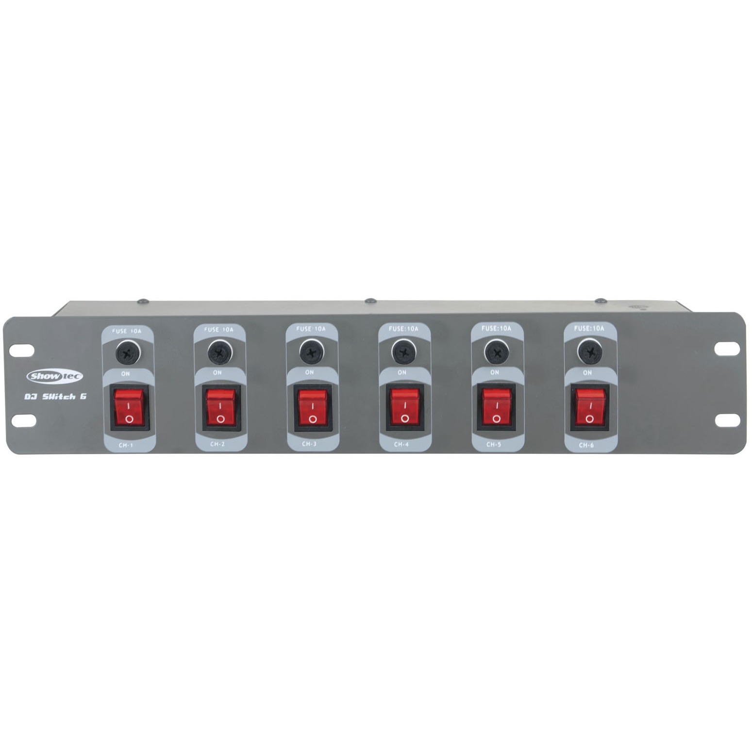 Showtec DJ-Switch 6 – 6-ти канальный аналоговый свитчер в рэковом исполнении.На лицевой поверхности - автоматические предохранители,рассчитанные на 10 А.Полная нагрузка устройства- 15 А.На тыльной поверхности свитчера - 6 разъёмов Schuko.Возможна установка в рэковую стойку 19˝ х 2U.