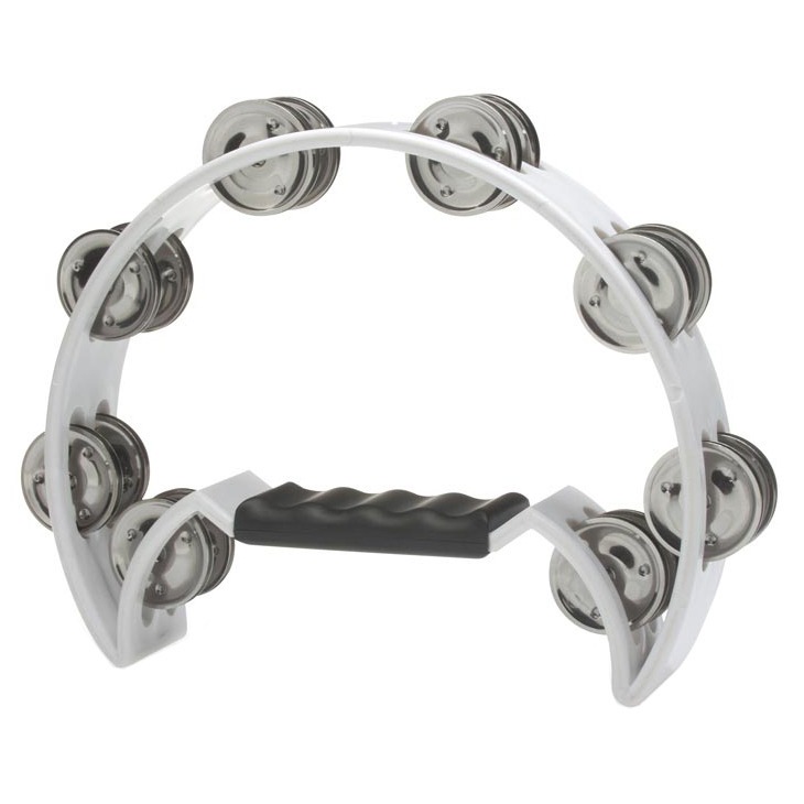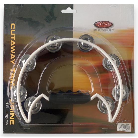 STAGG TAB-2 WH - это пластиковый тамбурин с ручкой, форма: полумесяц, 16 джинглов (бубенчиков), цвет: белый.