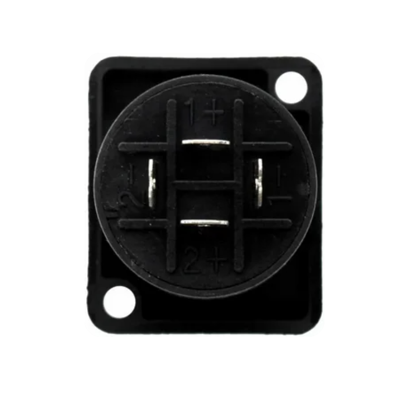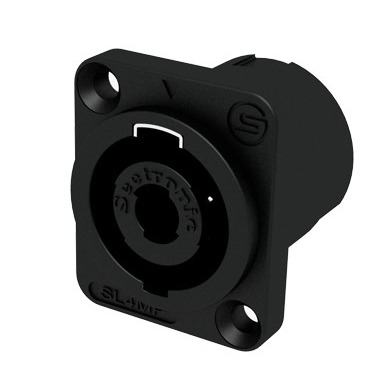 Это 4-контактный панельный разъём типа SpeakON, предназначенный для подключения громкоговорителей и усилителей. Он имеет чёрный корпус из термопластика, фланец D-типа и поворотную систему блокировки. Разъём оптимизирован для использования в динамиках