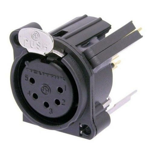 Разъем XLR панельный, 5 конт., гнездо, вертик., в ПП, тип-A, без заземления, доп. переключатель.