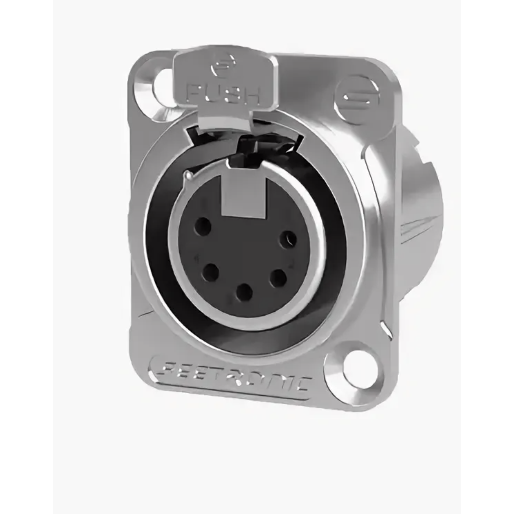 это 5-контактный панельный разъём типа XLR («мама», гнездо) с металлическим корпусом. Предназначен для подключения профессионального аудиооборудования, систем управления освещением и промышленных применений, требующих надёжного соединения
