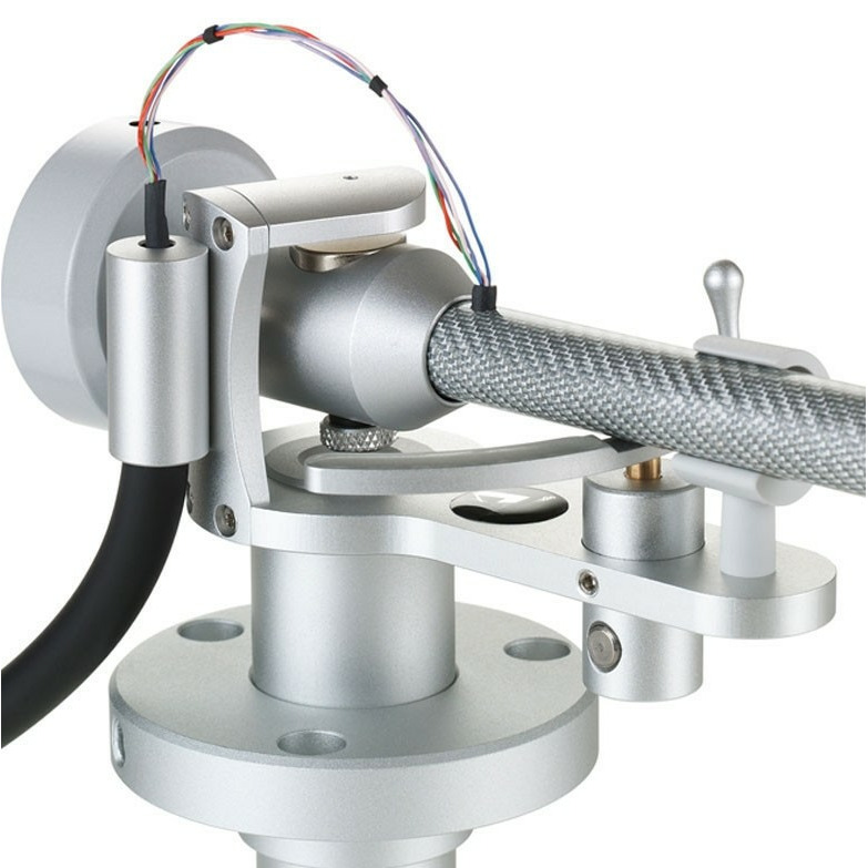 Трубка тонарма Clearaudio Verify изготовлена из углеволокна и обладает превосходными антирезонансными характеристиками, а также обладает превосходным внешним видом. Тонарм опирается на оригинальный подшипник на магнитной подушке, и по этой причине не обладающий механическим трением, в отличие от традиционного узла. В результате обеспечивается исключительно плавное перемещение иглы по дорожке пластинки, являющееся залогом чуткого к нюансам звукоизвлечения. Держатель картриджа выполнен из алюминия, и его положение можно точно настроить под установленную головку. Угол азимута в 90 градусов с высокой точностью установлен на заводе-изготовителе, однако при необходимости и его можно дополнительно отрегулировать. Для соединения звукоснимателя с фонокорректором в тонарме используется фирменный кабель Clearaudio Direct Wire.