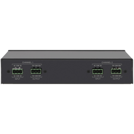 TR-92 – линейный трансформатор для трансляционных линий напряжением 70/100 В, стерео. Пассивные линейные трансформаторы серии TR предназначены для преобразования усиленного аудиосигнала низкоомного усилителя (4 или 8 Ом) в высоковольтный аудиосигнал для акустических систем трансляционных линий 70/100 В. Линейный трансформатор является, таким образом, преобразователем импедансов. Максимальная коммутируемая мощность ТR-92 составляет 100 Вт на каждый канал (2x100 Вт). Входные и выходные терминалы реализованы на клеммных колодках типа Phoenix. Прибор имеет два параллельных идентичных канала, для подключения стереоусилителя или двух моноусилителей. Устройство не требует электропитания и обеспечивает низкий уровень искажений и потерь. В качестве опции доступен адаптер RK-1 для установки прибора в рэковую стойку.
