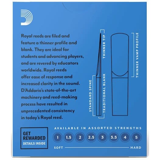 Трости Rico Royal RBB1020 для кларнета Eb, размером 2.0, сочетают качества традиционной заточки Rico с преимуществами французской заточки. Трости Rico Royal предназначены для прогрессирующих исполнителей и обеспечивают хороший отклик на всех регистрах и более чистое звучание. Модернизированные станки Rico для изготовления тростей и доведенный до совершенства технологический процесс обеспечивают высочайшее качество выпускаемой сегодня продукции Rico Royal. Идеально подходят как для классического, так и для джазового исполнения.