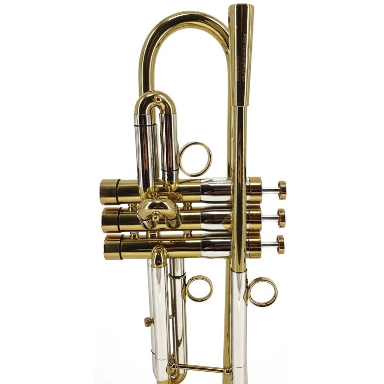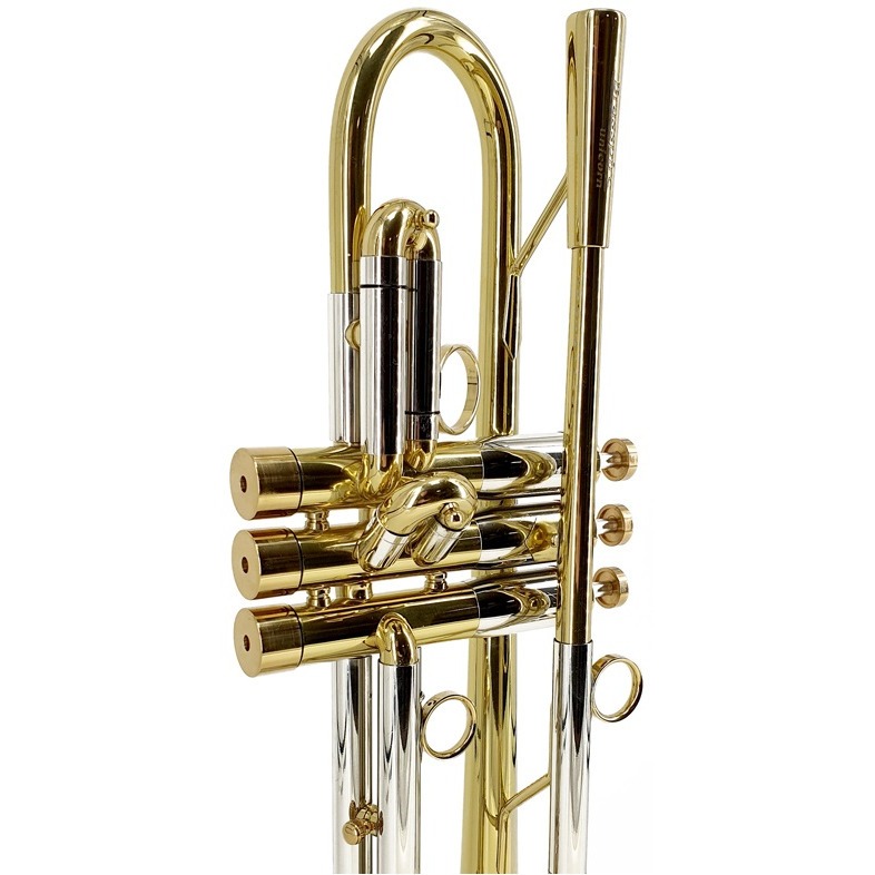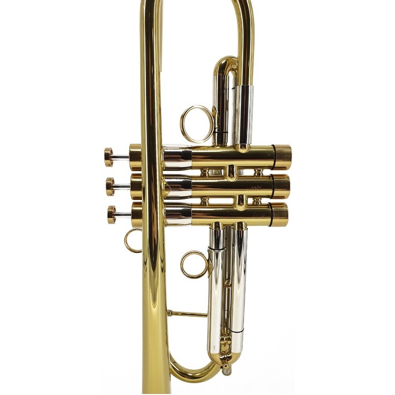 Усовершенствованная конструкция позволяет достичь насыщенного звучания с большим количеством красивых оттенков. Регулирующее кольцо с фиксатором на третьем кроне обеспечивает исключительный комфорт во время исполнения. Золотое покрытие придает трубе особую эффектность и оригинальность. Модель поставляется в комплекте с мундштуком и полужестким кейсом, который надежно защищает инструмент от механических повреждений.