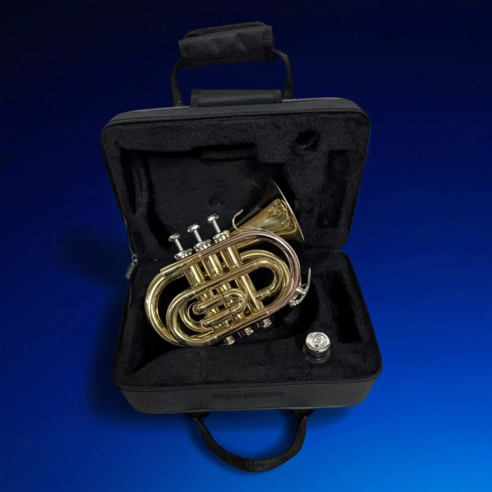 Это мини-труба (pocket trumpet) в строе Bb (си-бемоль). Это компактный инструмент, предназначенный для начинающих музыкантов, а также для путешествующих музыкантов или тех, кто хочет попрактиковаться в игре на трубе в отпуске.