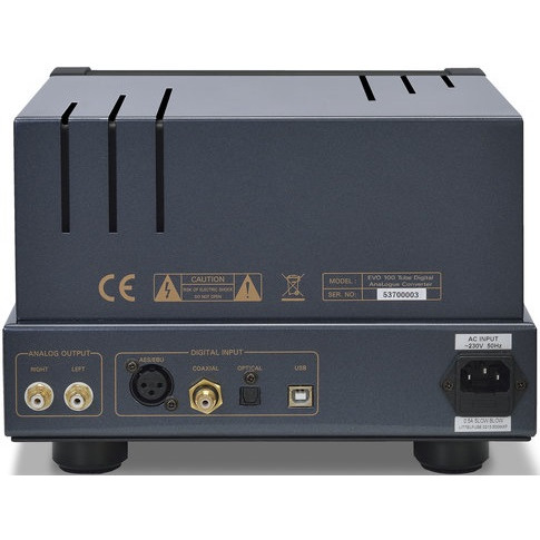 EVO 100 Tube DAC это цифро-аналоговый преобразователь в линейке EVO компании PrimaLuna. Особенность ЦАПа заключается в применении лампового тактового генератора SuperTubeClock, в котором используется миниатюрный электровакуумный триод российского производства с увеличенным сроком службы. Согласно информации производителя, SuperTubeClock обеспечивает предельно низкий уровень помех в наиболее важной для обеспечения качественного звучания полосе частот и значительно понижает джиттер, что в итоге выражается в улучшении переходных характеристик, правильном тональном балансе, а также в четком, чистом и динамичном звучании с высоким разрешением и детальностью. Для конвертации «цифры» в «аналог» задействован чип TI (Burr-Brown) PCM1792A, поддерживающий форматы PCM до 24 бит/192 кГц и DSD128. В конструкции также предусмотрен апсемплер TI (Burr-Brown) SRC4192, поднимающий разрешение сигнала до 24 бит/192 кГц.