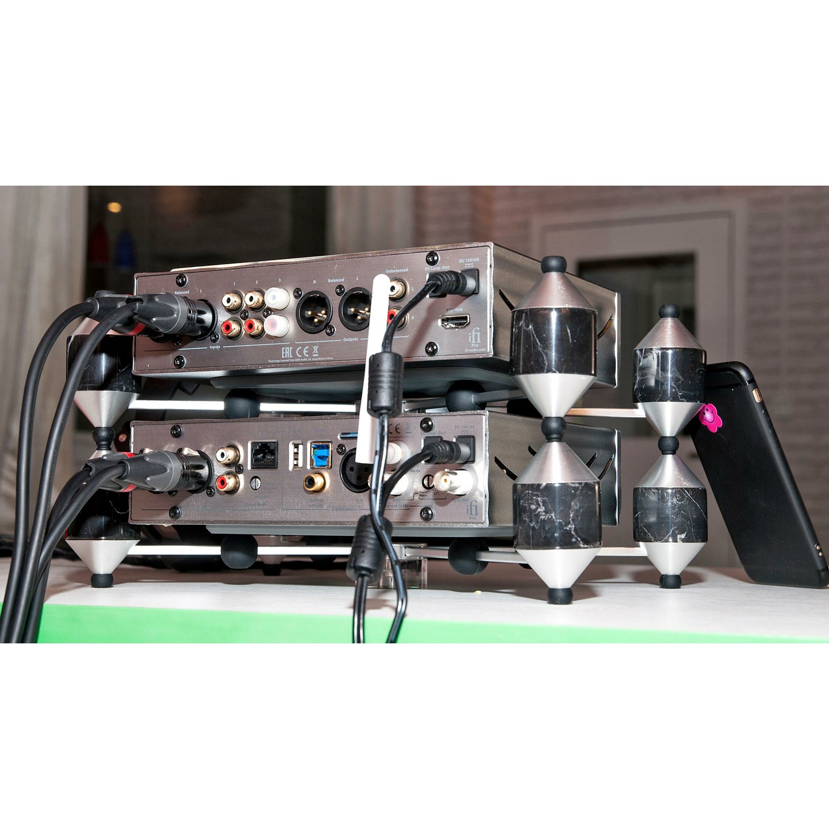 Подключение к сети — по Ethernet или Wi-Fi, предусмотрен доступ к потоковым сервисам Spotify и Tidal. Аппарат совместим с демпфирующей подставкой Pro iRack.