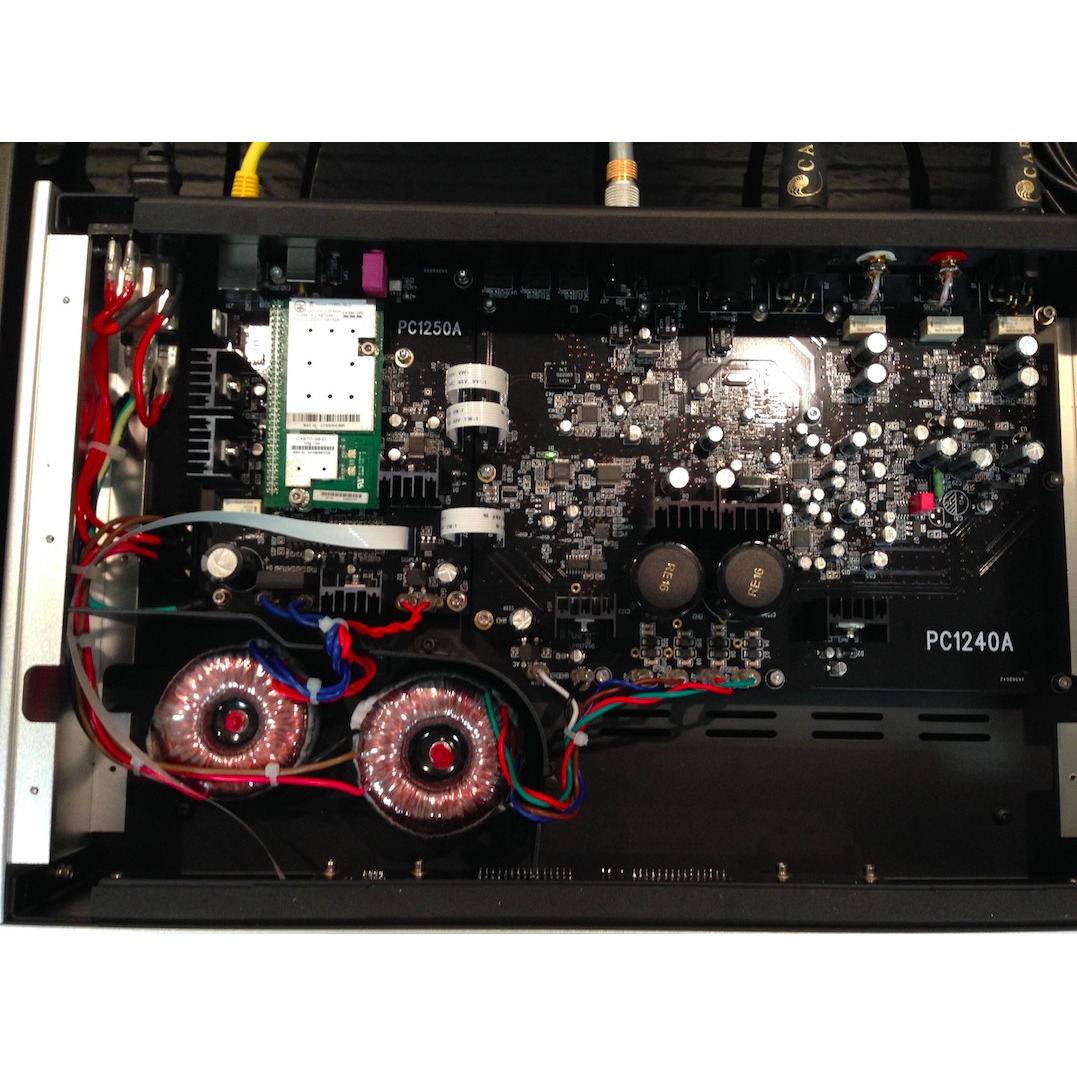 Для перевода «цифры» в «аналог» используются два чипа AK4490EQ (по одному на канал), а в роли преобразователя частоты квантования выступает чип AK4137EQ. Отдельного внимания заслуживает новый высокоэффективный тактовый генератор. БП флагмана оснащен парой тороидальных трансформаторов для раздельного питания цифровых и аналоговых цепей, а также конденсаторами общей емкостью в 54 000 мкФ. В выходной аналоговой секции применяется технология SoundEngine, благодаря которой в топологии схем используется прямая связь вместо обратной связи. В итоге удается существенно понизить искажения. Отношение сигнал/шум модели составляет 150 дБ, а коэффициент искажений не превышает 0,0005%.