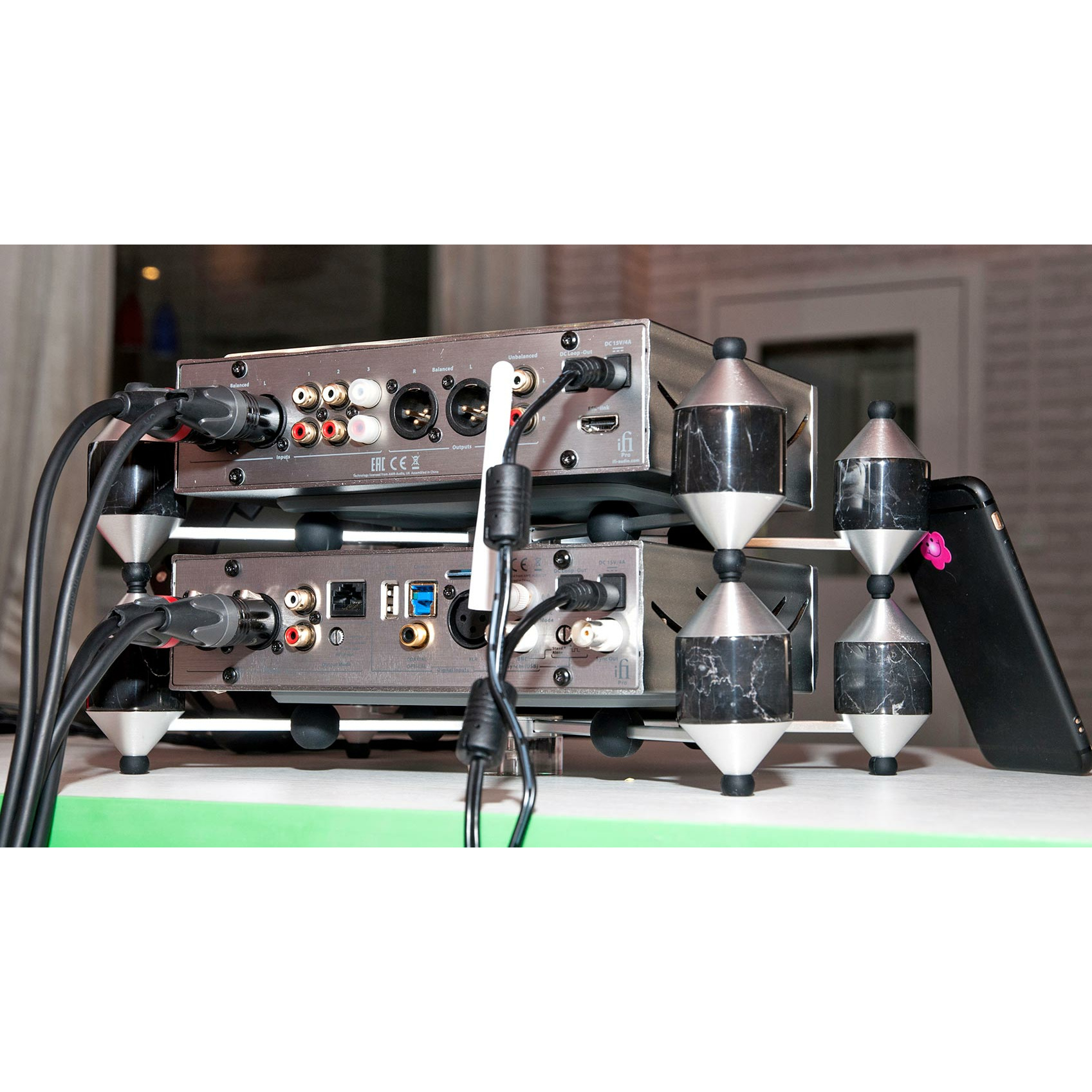 Супер конденсаторы ELNA Dynacap с низким импедансом. Цифровая секция оснащена банком супер конденсаторов Elna Dynacap общей емкостью 6 600 мкФ. iFi Audio использует супер конденсаторы Elna Dynacap DZ, потому что они имеют внутренний импеданс в 400 раз меньше, чем обычные супер конденсаторы. Этот исключительно низкий импеданс означает, что они отдают энергию намного быстрее, чем другие супер конденсаторы.