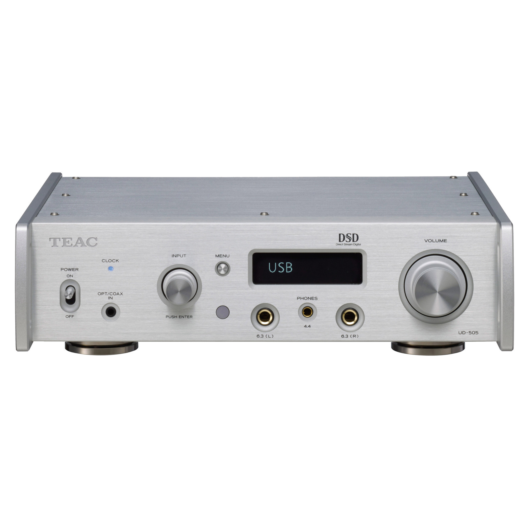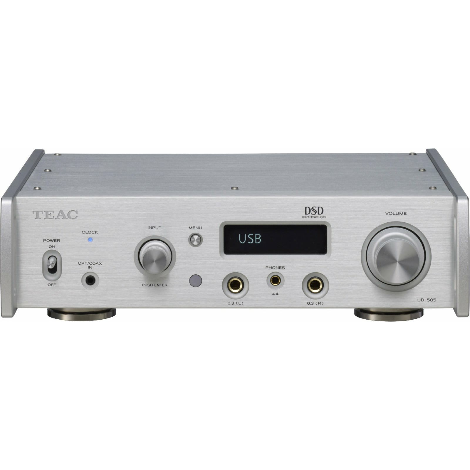 Модель TEAC UD-505 представляет собой третий этап развития флагманской линейки внешних ЦАПов TEAC и использует новые топовые чипы VERITA AK4497. На каждый канал приходится по одному такому чипу, поддерживающему PCM (до 32 бит/768 кГц) и DSD (до 22,5 МГц) в нативном режиме. На борту имеются два тактовых генератора для сигналов, кратных частотам 44,1 и 48 кГц, а через порт BNC доступно подключение внешнего клока (10 МГц) с целью понижения джиттера. Для PCM можно использовать один из пяти отключаемых цифровых фильтров, а для DSD-потока имеются два фильтра на выбор. ЦАП оснащен апсемплером, повышающим разрешение PCM до 32 бит/384 кГц и переводящим PCM в DSD (до 24,5 МГц).
