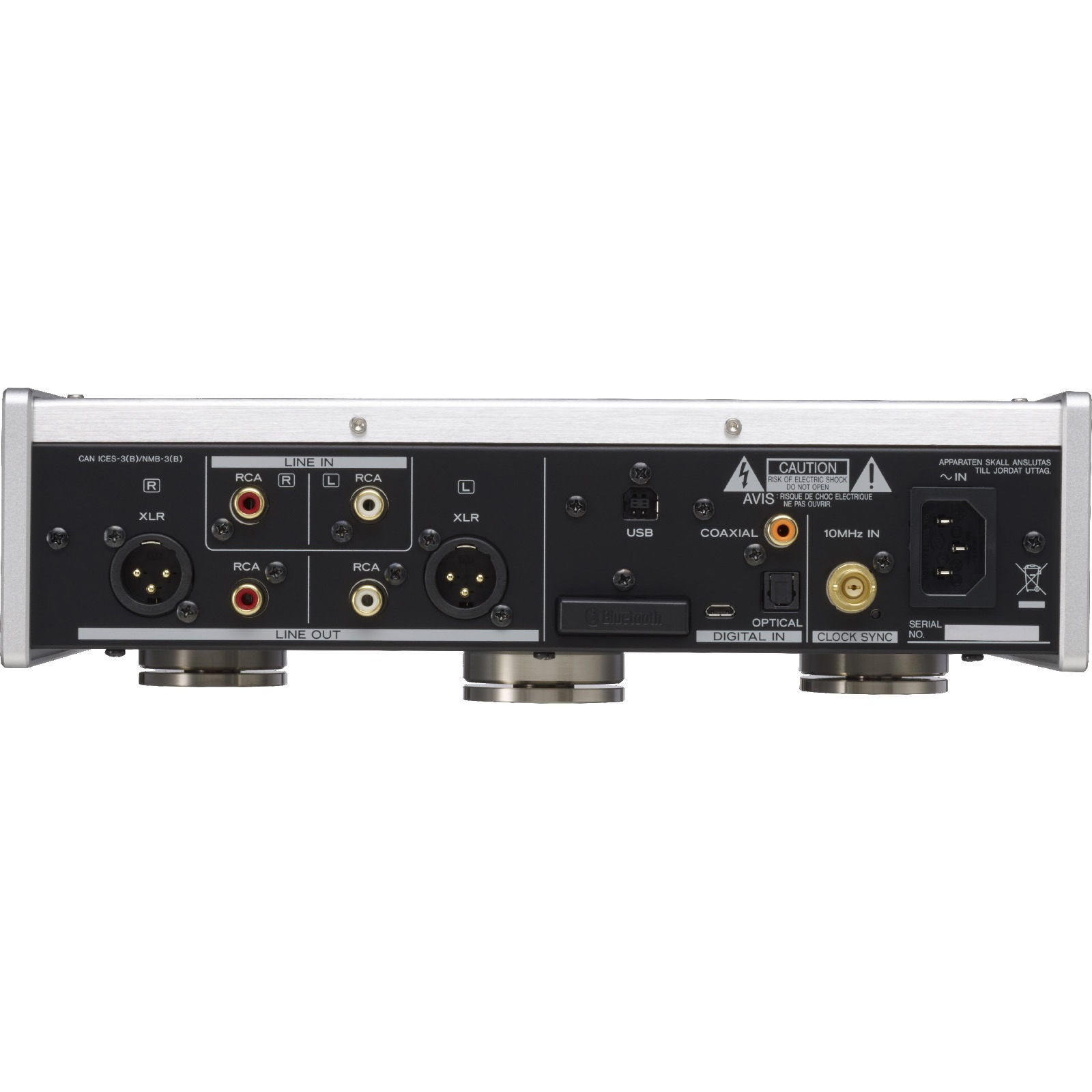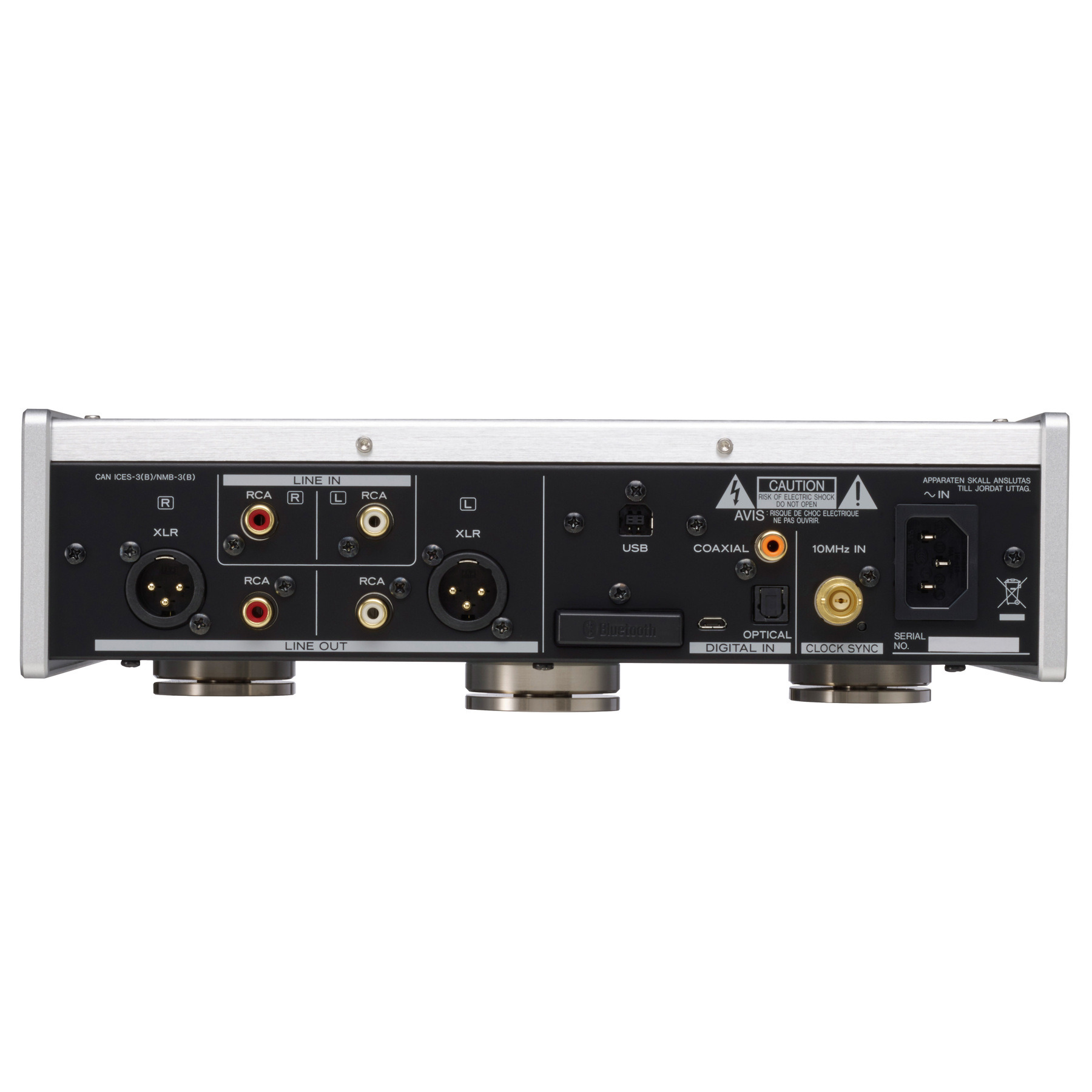 Балансная схемотехника модели соответствует принципу «двойного моно». Каждый канал получает питание от отдельного тороидального трансформатора, а цифровой изолятор защищает аналоговые цепи от проникновения шумов, генерируемых цифровыми источниками сигнала и прочими контурами. В аналоговой секции установлены четыре буферных дискретных сильноточных усилительных каскада (технология TEAC-HCLD), гарантирующих широкий динамический диапазон. Два из них используются для балансного выхода, а остальные два — для RCA-выхода. Модель имеет высокоточный пошаговый регулятор громкости TEAC-QVCS, изменяющий напряжение на линейном выходе, а также участвующий в настройке уровня громкости встроенного HCLD-усилителя для наушников. Для наушников имеются два 6,3 мм гнезда и 4,4 мм 5-контактный балансный разъем Pentaconn. При симметричном подключении используется активное заземление, подавляющее шумы, создаваемые блоком питания.