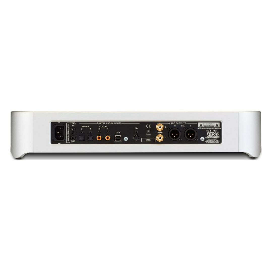 Цифро-аналоговый преобразователь di322 удерживает производителя Wadia на передней линии воспроизведения цифровой музыки, добавляя расширенную поддержку файлов DSD с высокой точностью к линии Wadia. Через USB-вход di322 поддерживает музыкальные файлы DSD64, DSD128 и DSD256. Файлы PCM со скоростью дискретизации до 32 бит / 384 кГц, включая форматы DXD 352,8 кГц и DXD 384 кГц, также могут воспроизводиться через USB-вход. Благодаря добавлению поддержки DSD, любители цифровой музыки могут испытать и насладиться некоторыми из новейших музыкальных предложений высокого разрешения. Его 2 оптических и 2 коаксиальных входа принимают музыку с разрешением до 24 бит / 192 кГц, а вход DIN позволяет будущим моделям Wadia подключаться к di322 на высоких уровнях производительности.