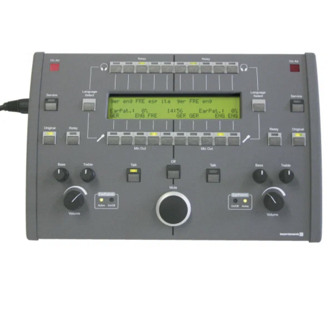Cдвоенный пульт синхропереводчика, предназначенный для попеременной работы двух переводчиков. Устройство позволяет осуществлять прямой перевод, relay-перевод и независимую связь с оператором системы